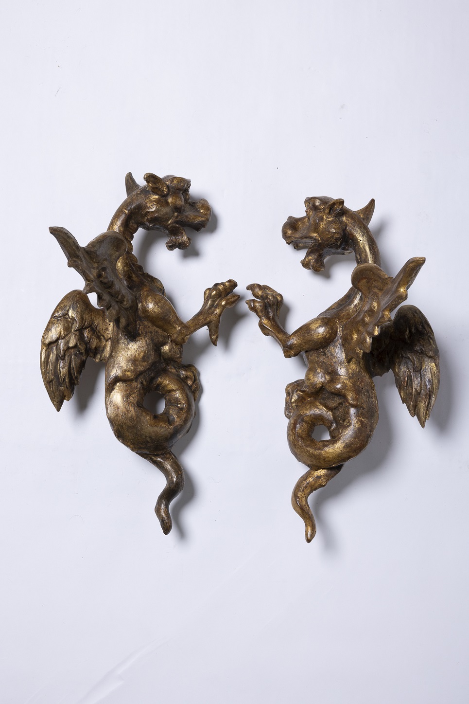 A pair of Italian Rococo period gilt wood dragons