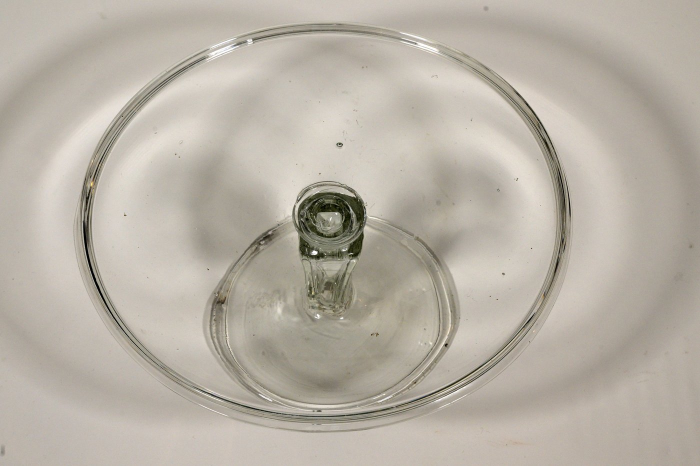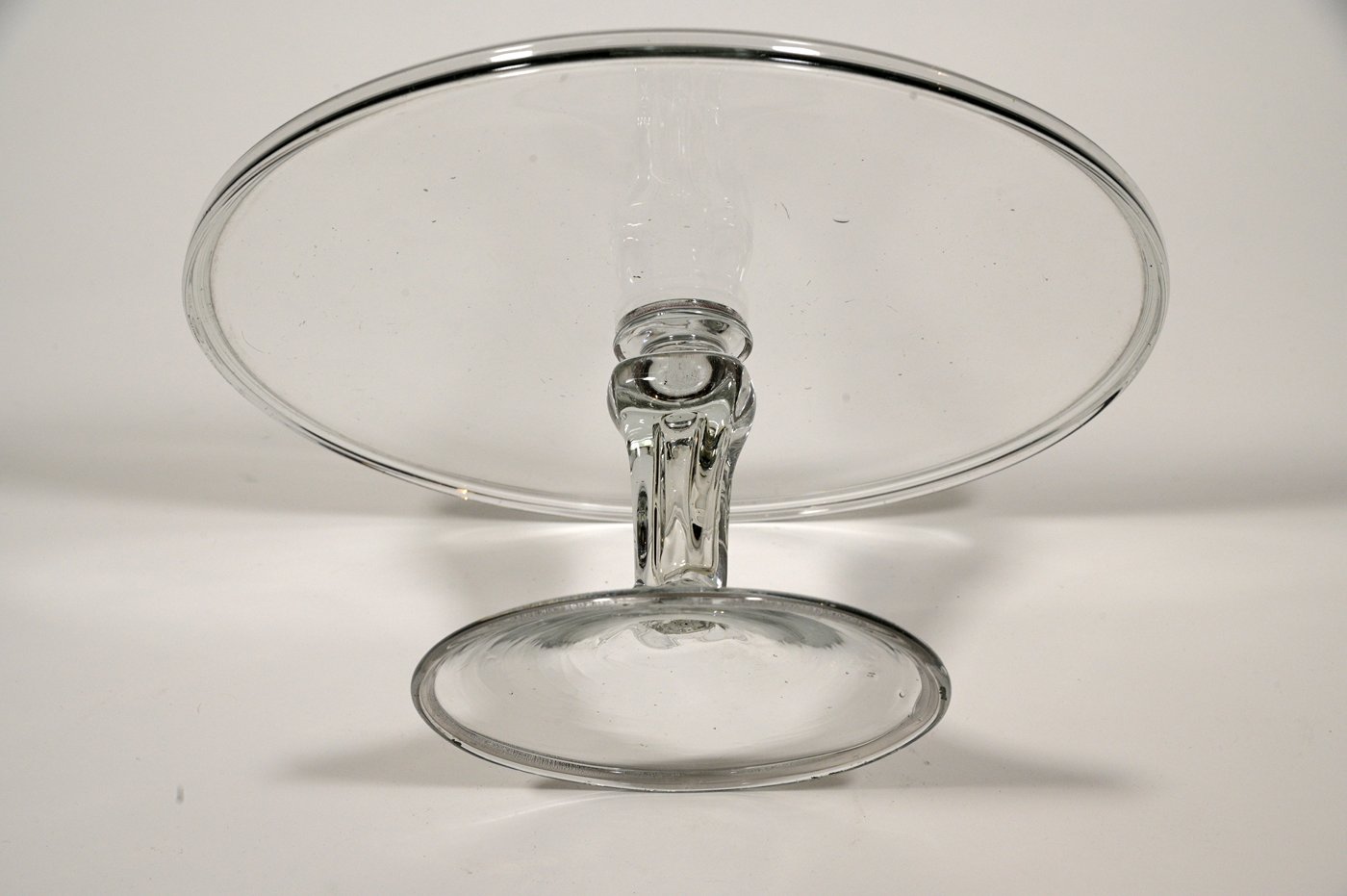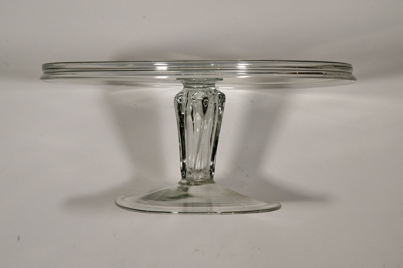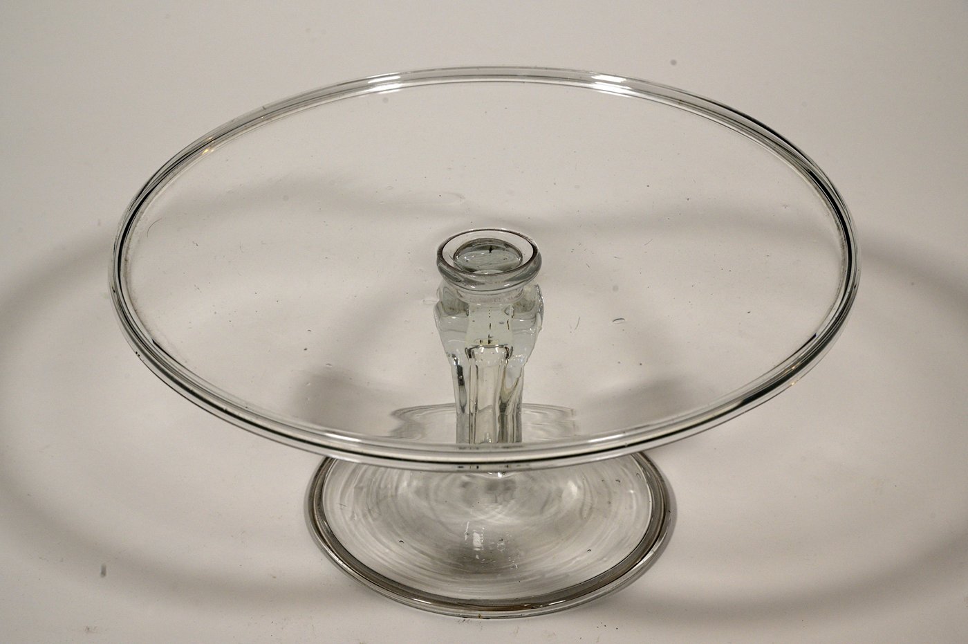 A pair of large Spanish glass trays or gueridons on square shaped stand or foot, the borders are moulded.