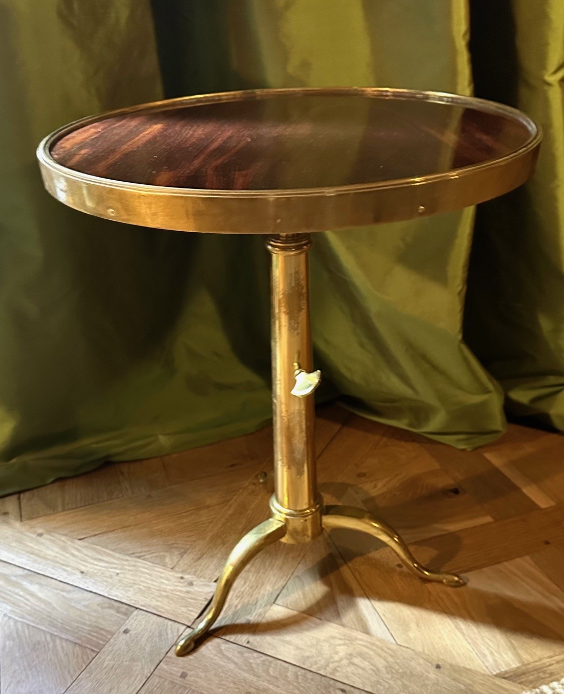 A Mahogany and brass telescopic gueridon by Maison Meilleur