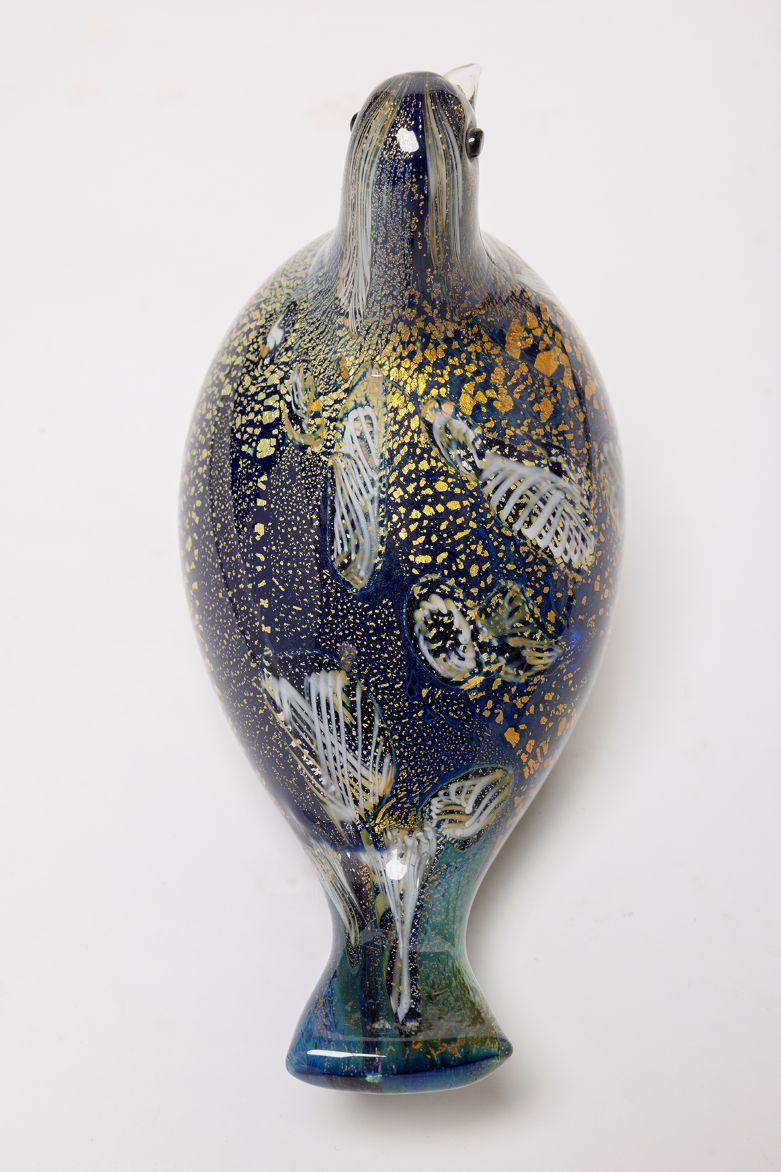 A pair of coloured and gilt glass birds by Aldo Nason , a Venetian artist working in Murano , circa 1970, with fine inclusion and reticello work, on Napoleon III gilt wood bases.