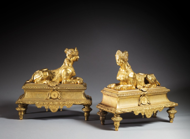Pair of French ormolu chenets aux sphinx