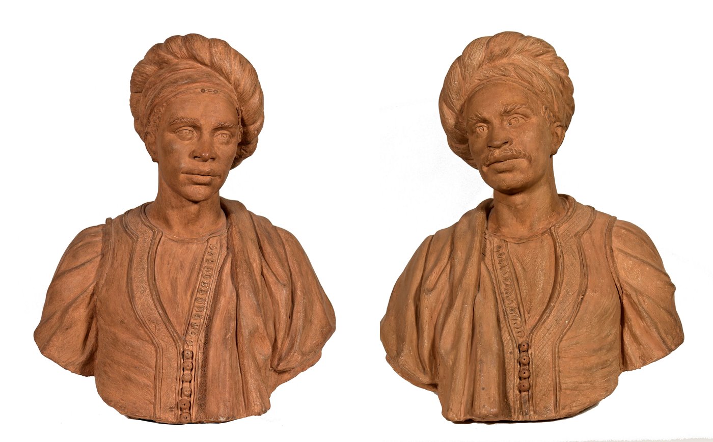 Pair of terracotta busts of orientals