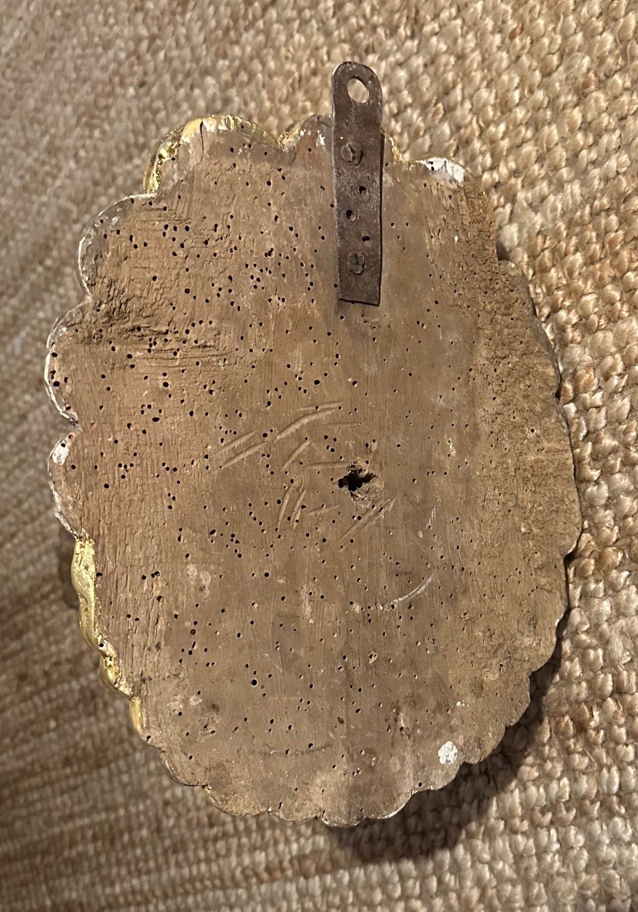 A pair of unique Italian baroque period gilt wood wall lights in the shape of lion heads holding arms , very whimsical and in original condition.